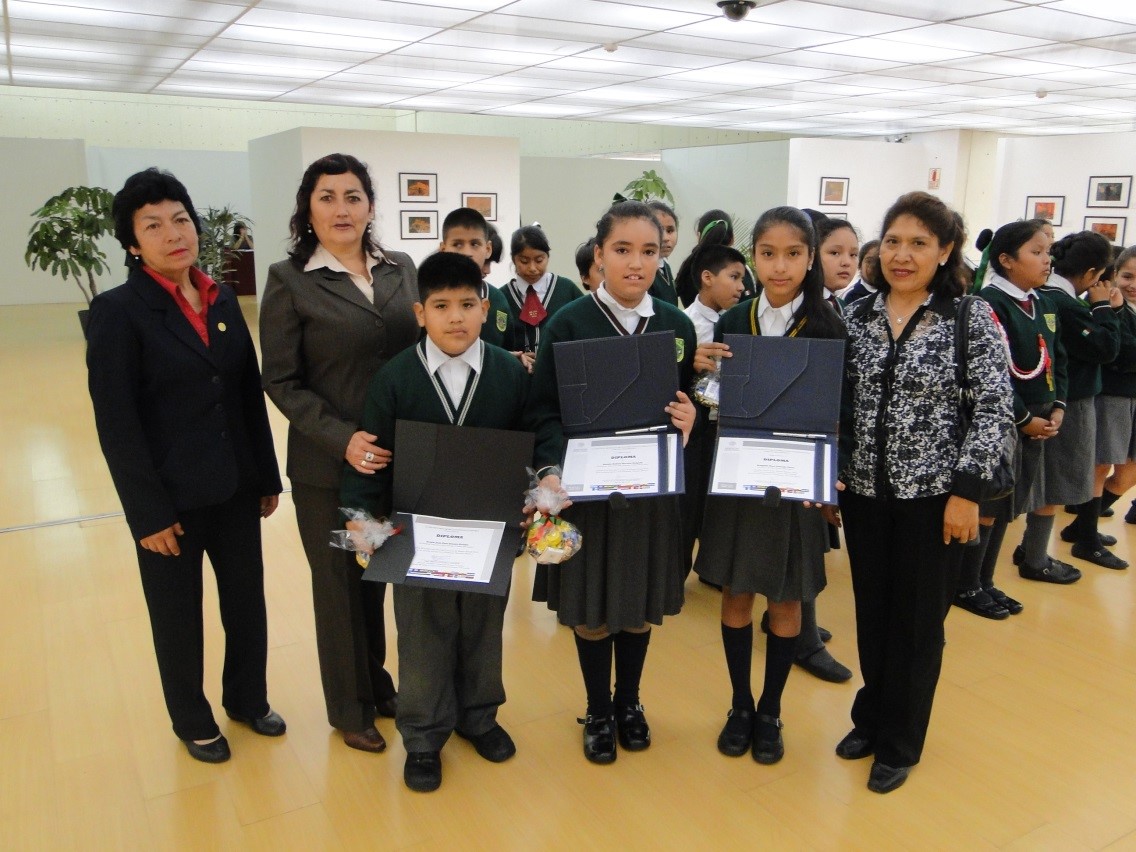 La ceremonia de entrega de los diplomas fue presidida por la Directora de Museos del Ministerio de Cultura, Dra. Sonia Guillén, quien dio la bienvenida al grupo de estudiantes de la escuela “Estados Unidos Mexicanos” y explicó el papel que desempeñan los museos en la preservación del acervo del arte y la cultura universal, así como las razones para visitar los museos del Perú. Invitó a los estudiantes a conocer más acerca del patrimonio cultural de su país y de México y a continuación hizo entrega de los reconocimientos a las niñas Samira Andrea Barrea Delgado, Brigitte Nora Quicaña Tacza y al niño Sergio Jean Paul Amaya Quispe.
