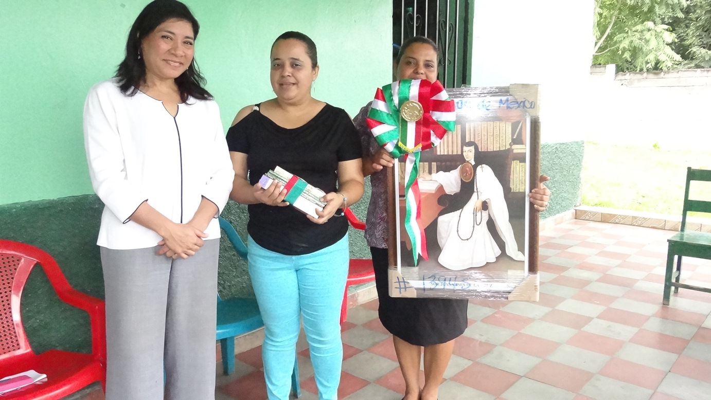 Como parte de las actividades de fortalecimiento del Programa Escuelas México, el Embajador de México en Honduras, Víctor Hugo Morales realizó la donación de cinco libros de Sor Juana Inés de la Cruz a la Escuela “Sor Juana Inés de la Cruz”, plantel que forma parte del citado Programa y que está ubicada en la comunidad de Pozo Zarco, del municipio de Salamá, departamento de Olancho. La donación de los libros fue acompañada además de una copia al papel del retrato de Sor Juana Inés de la Cruz elaborado por el pintor mexicano Miguel Cabrera, con el fin de que la citada escuela tenga una mayor identidad con el personaje mexicano que da nombre a dicha institución. En toda la historia de la escuela, nunca existió una imagen de la escritora mexicana.