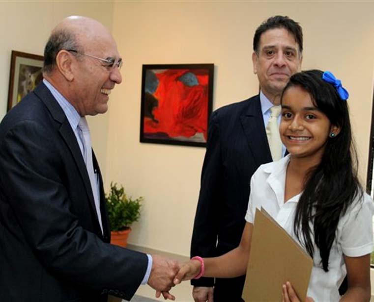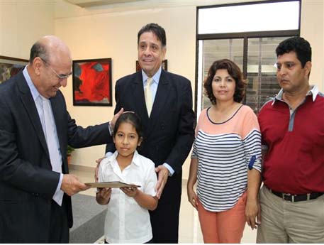 En el acto se hizo entrega del premio a la niña Diana Pineda Landaverde del Centro Escolar Miguel Hidalgo y Costilla de Suchitoto, Cuscatlán, ganadora del concurso de Mejor aprovechamiento de Sexto Grado, y a la niña Liliana Claribel Guevara Pereira, del Centro Escolar Benito Juárez de Osicala, Morazán, ganadora del concurso de Pintura Infantil, quienes viajarán este domingo acompañadas de sus madres a la Ciudad de México.