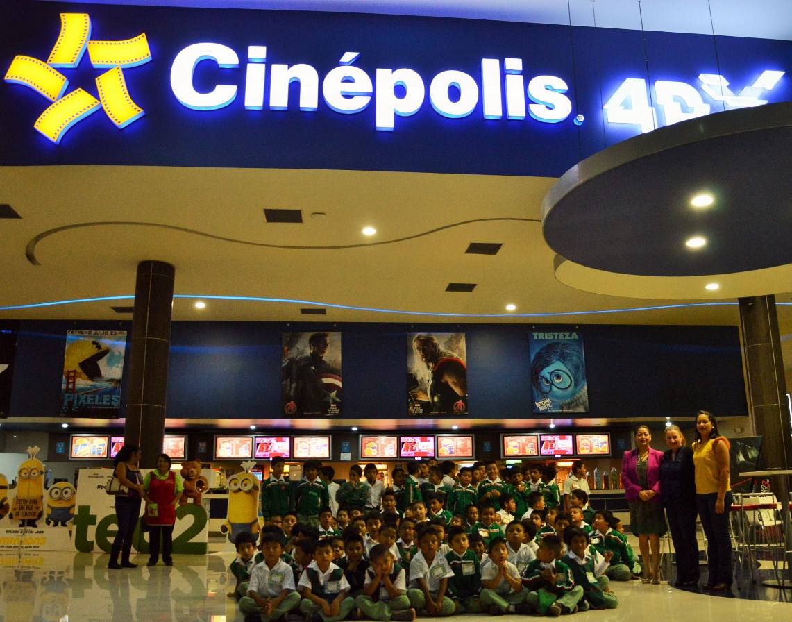 Como parte de los esfuerzos que realiza la Embajada de México en Guatemala con el objetivo de definir áreas de colaboración entre las empresas mexicanas en Guatemala y el Programa “Escuelas México”, el pasado 14 de mayo, Cinépolis ofreció cine gratis, soda y palomitas, a 100 niños de 1º, 2º y 3º grado de la Escuela para Varones No. 22, República de México, de la ciudad de Guatemala.