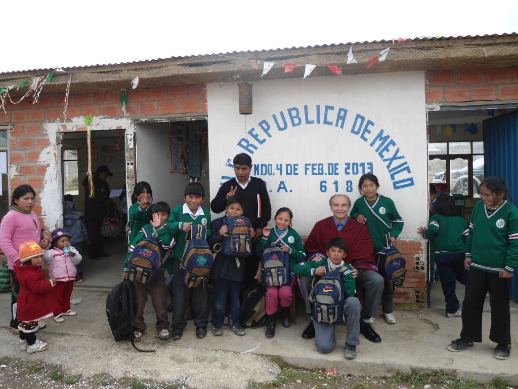 El día de hoy el Embajador de México en Bolivia, Héctor Valezzi, acompañado de la Tercera Secretaria Nuria Zúñiga y de la empleada auxiliar Maria Eugenia Portugal, visitaron la Unidad Educativa República de México de la ciudad de El Alto, a fin de hacer entrega de material didáctico donado por la Editorial Enseñanza S.A. (Colegio La Salle) y por el Centro Nacional de las Artes (CENART), en colaboración con Dixon-Vinci.