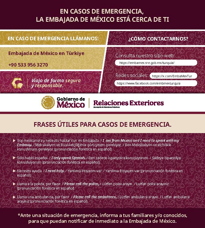 - Teléfono de Emergencias de Protección Consular: +90 533 956 3270