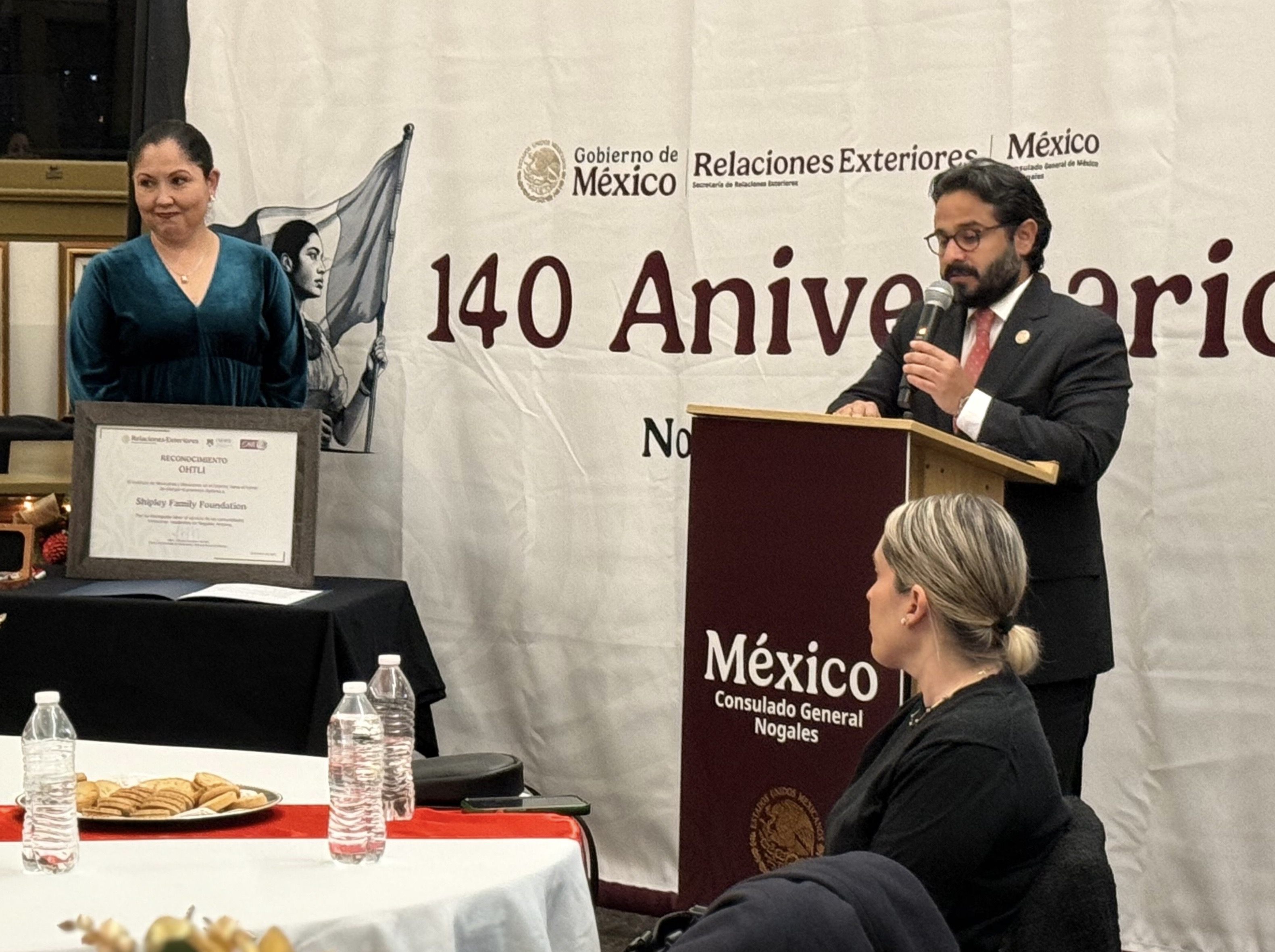 El Consulado General de México en Nogales otorgó el premio Ohtli 2025 a la Shipley Family Foundation, en reconocimiento a su destacada labor humanitaria e impacto positivo en el desarrollo social de la comunidad mexicana y local de ambos Nogales, particularmente en el área de educación a favor de la niñez mexicana.