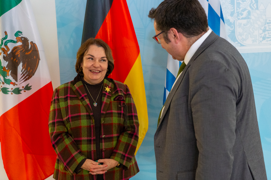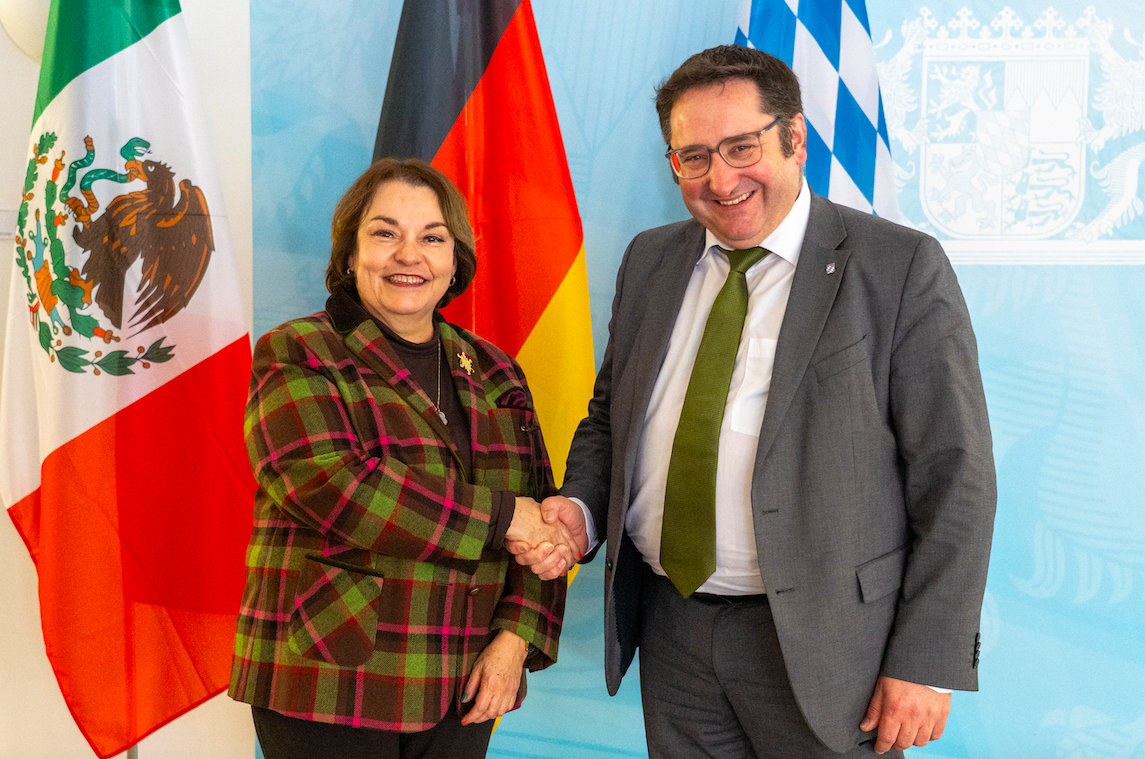 Con miras a la próxima misión empresarial que viajará a México del 21 al 28 de marzo, la cónsul Cecilia Villanueva Bracho se reunió con el secretario de Estado de Economía de Baviera, Sr. Tobias Gotthard y personas funcionarias del Ministerio de Economía, Desarrollo Rural y Energía. La misión contempla visitar los estados de Coahuila, Nuevo León y la CDMX, con el fin de explorar oportunidades y perspectivas para las empresas bávaras, y estará integrada por representantes de 16 empresas del sector de maquinaria y construcción de plantas, además de integrantes del parlamento estatal y de la cámara de industria y comercio de Alta Baviera, que es no sólo la cámara más grande de Alemania, sino también una de las de mayor fortaleza en toda Europa con más de 400 mil afiliados.