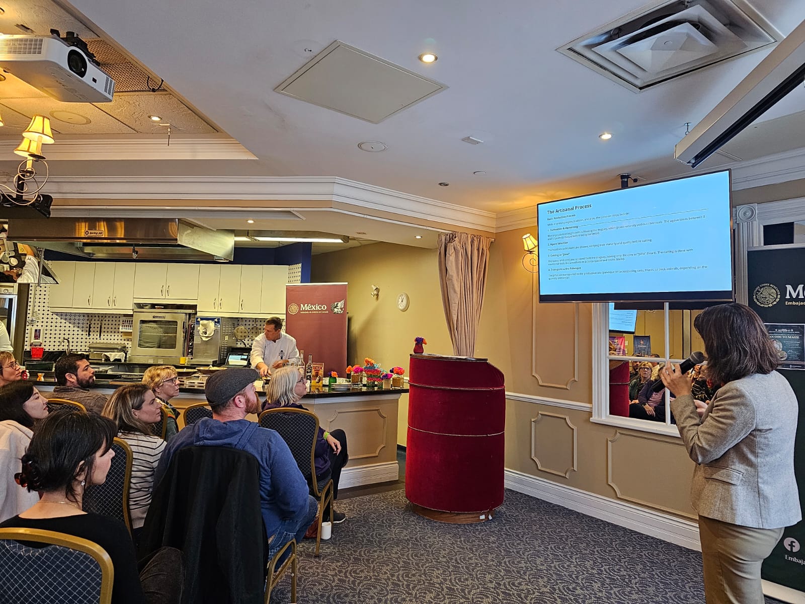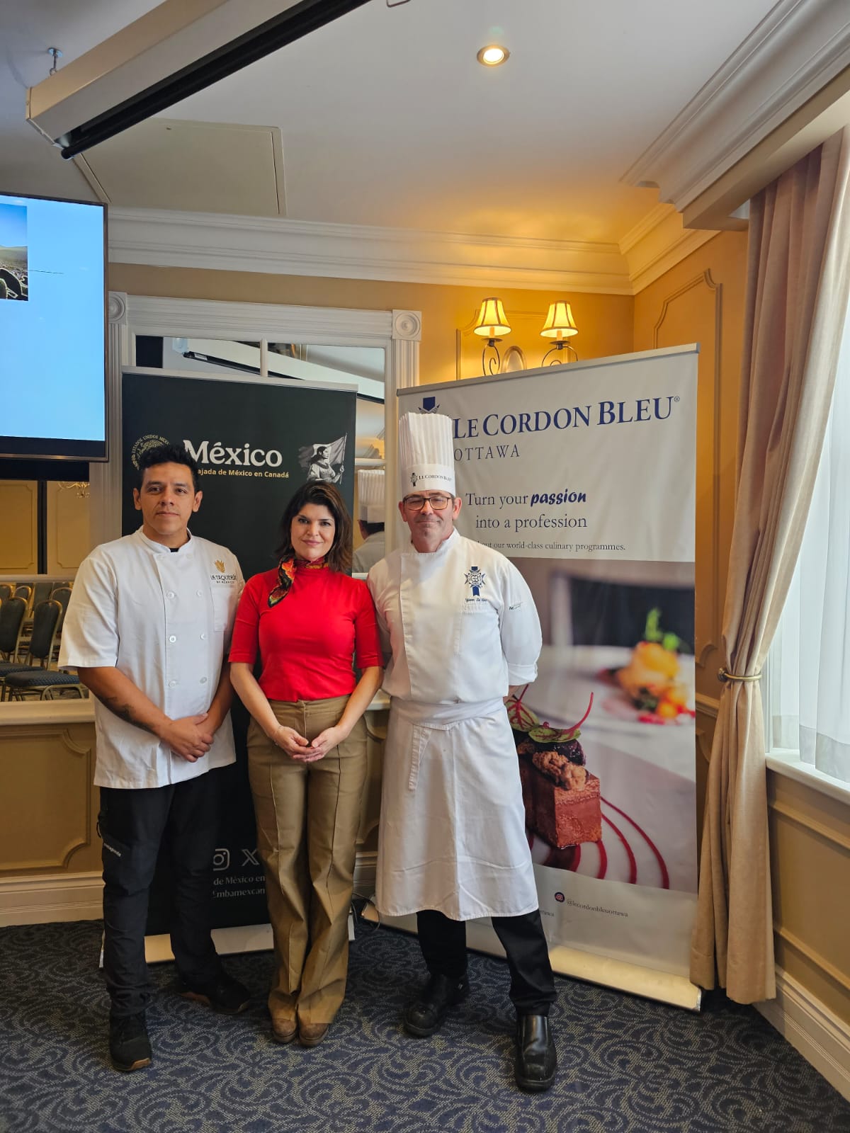 El 17 y 18 de octubre, la embajada organizó con el prestigioso instituto culinario Le Cordon Bleu, dos eventos gastronómicos con la participación del chef mexicano Sergio Velázquez, actualmente chef del restaurante de alta cocina mexicana “Mexhico” ubicado en Toronto. La cena de 5 tiempos, llamada "Oda al Maíz", incluyó un dúo de moles, sopa de milpa, nieve de limón, carrillera de res al chileatole verde, helado de champurrado, acompañado de un cóctel de mezcal con jamaica. Como parte de las labores de promoción económica, se presentaron mezcales procedentes de San Luis Potosí, Oaxaca y Zacatecas facilitados por la Asociación.