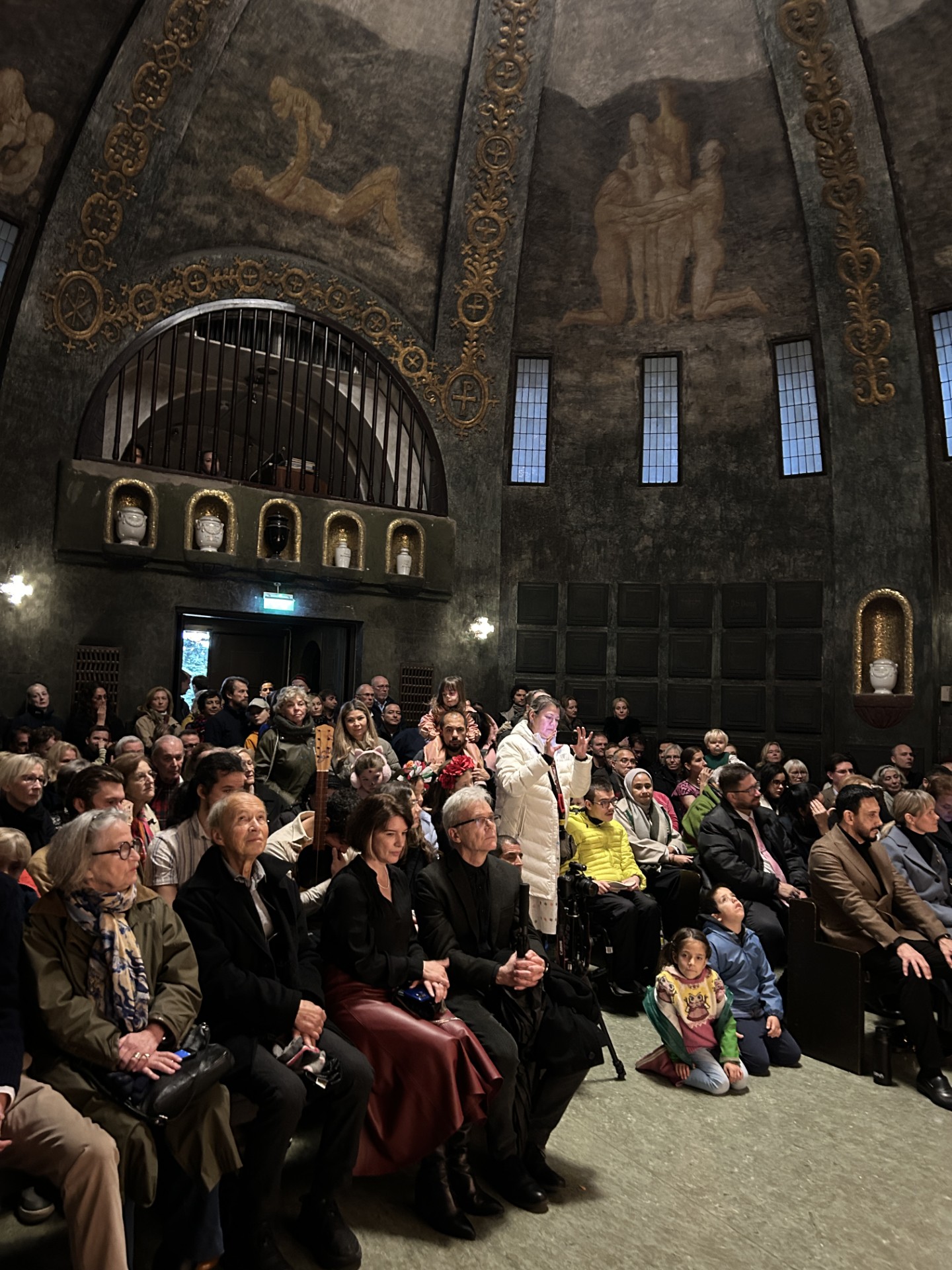 El altar fue diseñado por la artista mexicana residente en Noruega Lucía Díaz del Castillo. Se montó con el apoyo de la Embajada y voluntarios de la comunidad mexicana en el país. La artista intervino la capilla a fin de asegurarse que el altar y los murales que ahí se encuentran lograran una óptima conjunción estética.