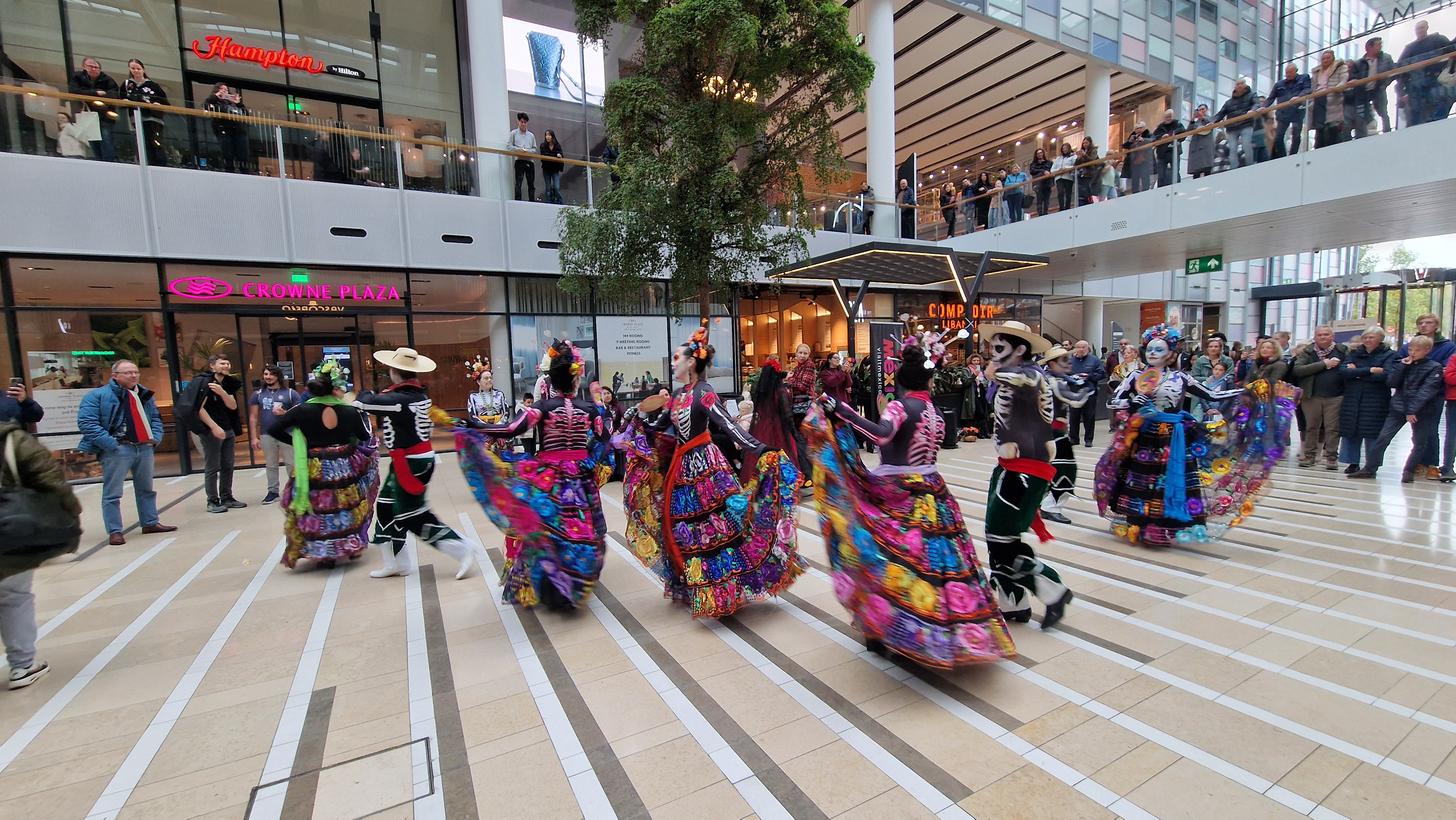 Por último, en el corazón de Utrecht, el centro comercial Hoog Catharijne se llenó de color y música con la participación de una Catrina a cargo de Sandunga Mexican Handcraft, presentaciones de danza folclórica del Ballet Folclórico Xochiquetzal y actividades infantiles de pintura facial.