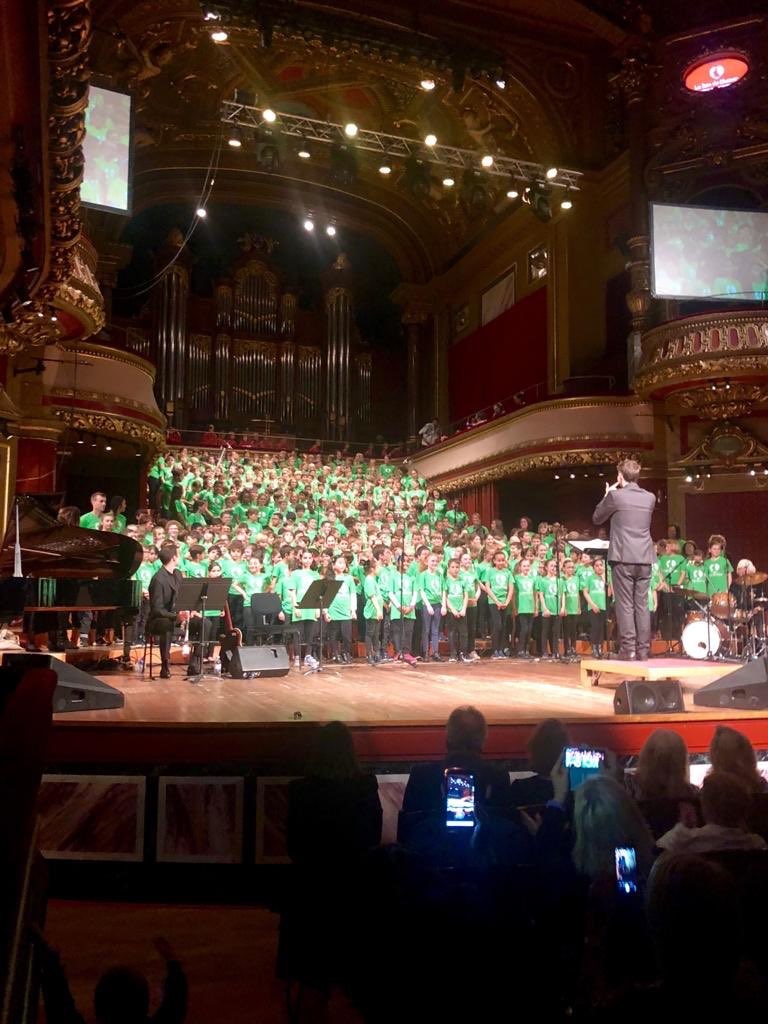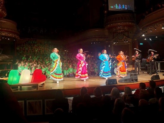 El pasado 9 de mayo tuvo lugar, en el prestigioso Salón Victoria (Victoria Hall) de Ginebra, el concierto filantrópico organizado por la asociación suiza “Don du Choeur”. Un coro de 400 niñas y niños procedentes de distintos colegios de Ginebra interpretó un emotivo y variado repertorio musical que incluyó melodías tradicionales mexicanas, como “Cielito Lindo” y “La Bamba”, ante un lleno total del recinto con capacidad para 1500 espectadores.