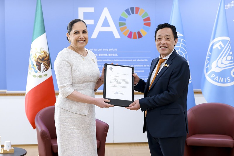 Por su parte, el director General, Dr. QU Dongyu, dio la bienvenida a la representante mexicana y reconoció el liderazgo de México en la región, así como su valiosa contribución técnica y política a la misión de la Organización.